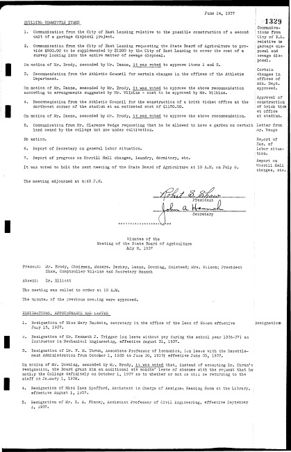 Meeting minutes, July 8, 1937