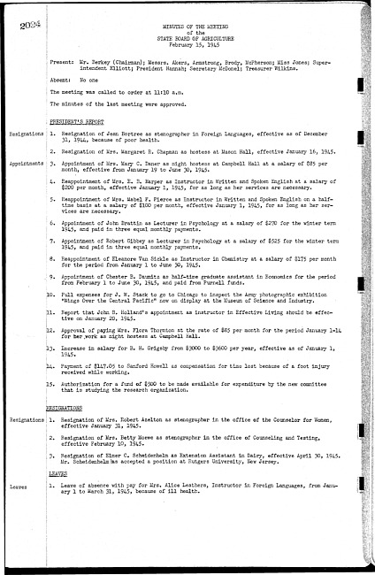Meeting minutes, February 15, 1945