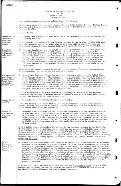 Meeting minutes, August 1, 1969
