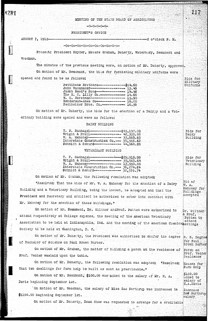Meeting minutes, August 7, 1912