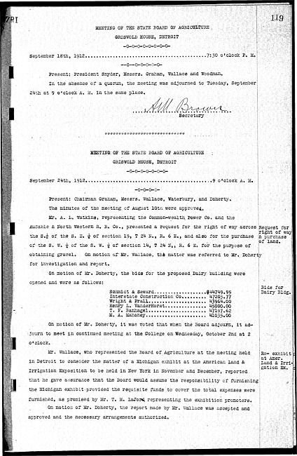 Meeting minutes, September 18, 1912