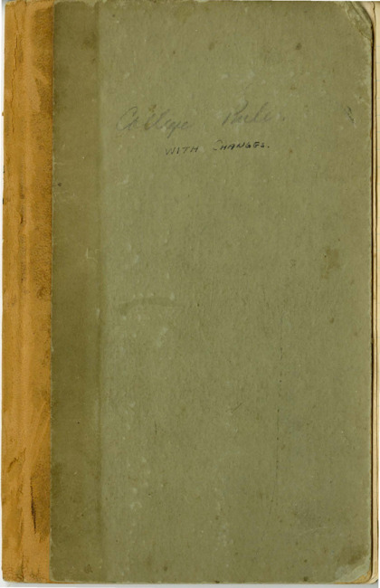 Student handbook from 1883 outlining rules of the Michigan State Agricultural College. Includes information regarding course of study, general conduct, labor, library, mail, board, and student government, as well as annotations.