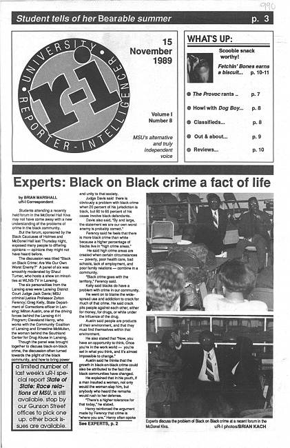University reporter-intelligencer. Vol. 1 no. 8 (1989 November 15)