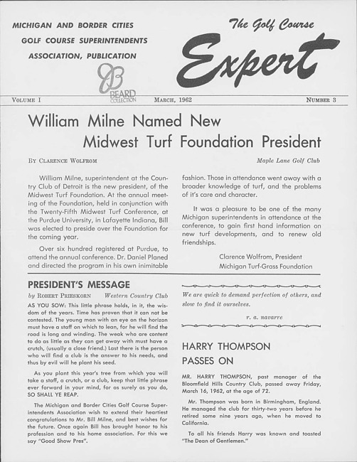 The golf course expert. Vol. 1 no. 3 (1962 March)