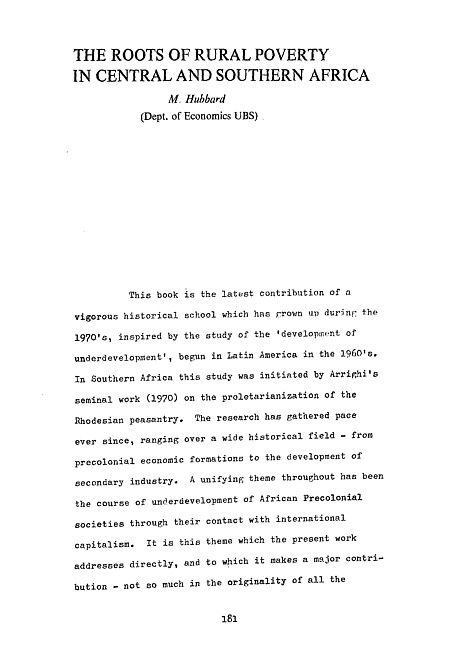 Review of: Robin Palmer & Neil Parsons (eds). The roots of rural poverty in Central and Southern Africa. London: Heinemann Educational, 1977