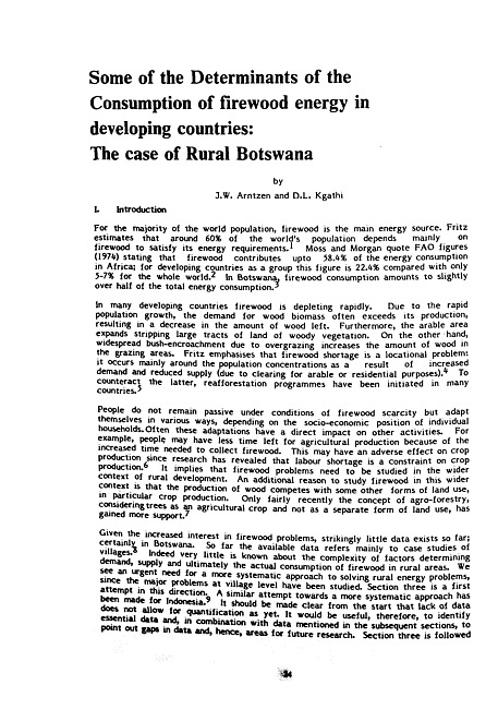 Some of the determinants of the consumption of firewood energy in developing countries : the case of rural Botswana