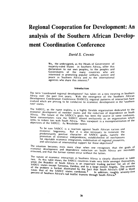 Regional cooperation for development : an analysis of the Southern African Development Coordination Conference