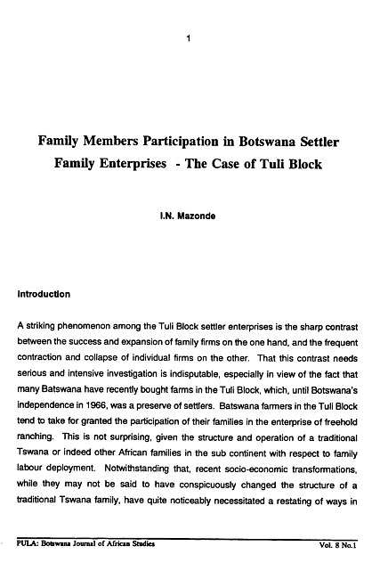 Family members participation in Botswana settler family enterprises : the case of Tuli Block