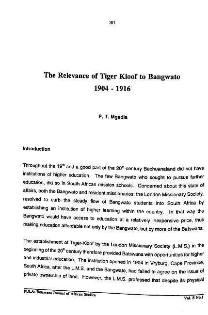 Pula : Botswana Journal of African Studies