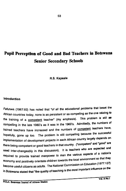 Pupil perception of good and bad teachers in Botswana senior secondary schools