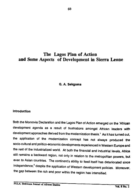 The Lagos plan of action and some aspects of development in Sierra Leone