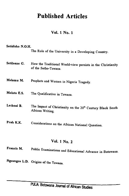 Pula : Botswana Journal of African Studies