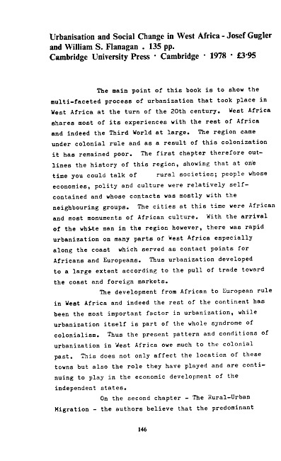 Book review : Urbanisation and social change in West Africa by Josef Gugler and William S. Flanagan