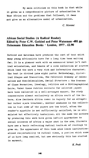 Review of: Peter C.W. Gutkind and Peter Waterman (eds). African social studies. London: Heinemann, 1977
