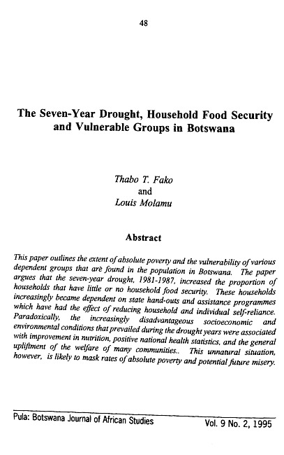 The seven-year drought, household food security and vulnerable groups in Botswana