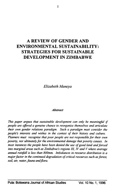 A review of gender and environmental sustainability : strategies for sustainable development in Zimbabwe