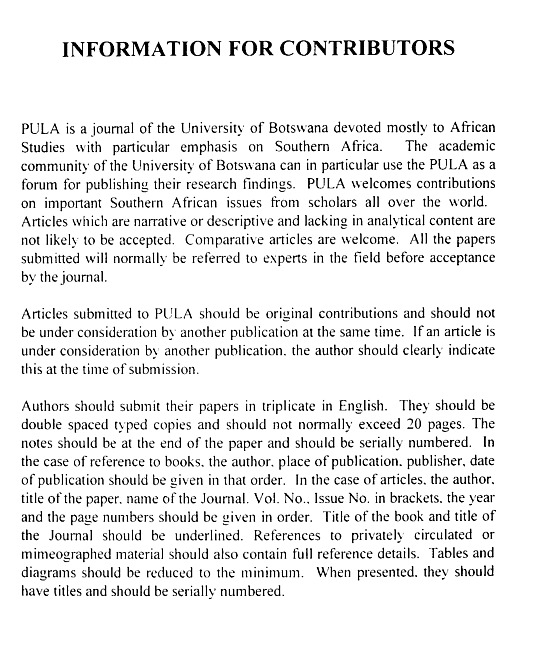 Pula : Botswana Journal of African Studies