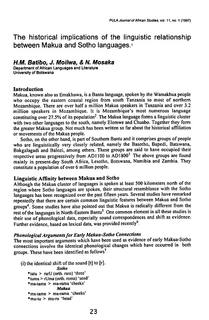 The historical implications of the linguistic relationship between Makua and Sotho languages