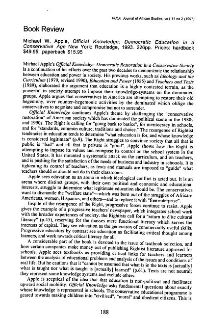 Review of: Michael W. Apple. Official knowledge. New York: Routledge, 1993