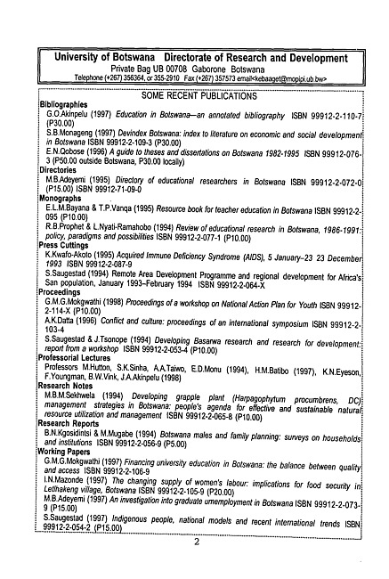 Advertisement : University of Botswana Directorate of Research and Development: some recent publications
