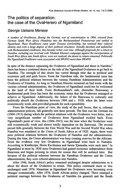 The politics of separation : the case of the OvaHerero of Ngamiland