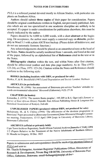 Pula : Botswana Journal of African Studies