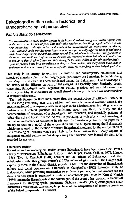 Bakgalagadi settlements in historical and ethnoarchaeological perspective