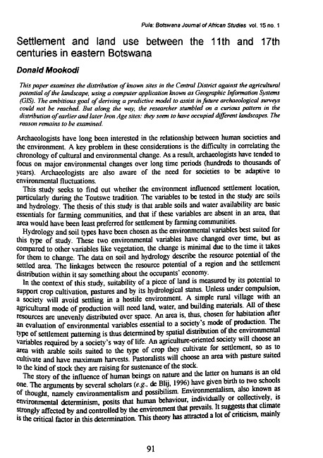 Settlement and land use between the 11th and 17th centuries in eastern Botswana