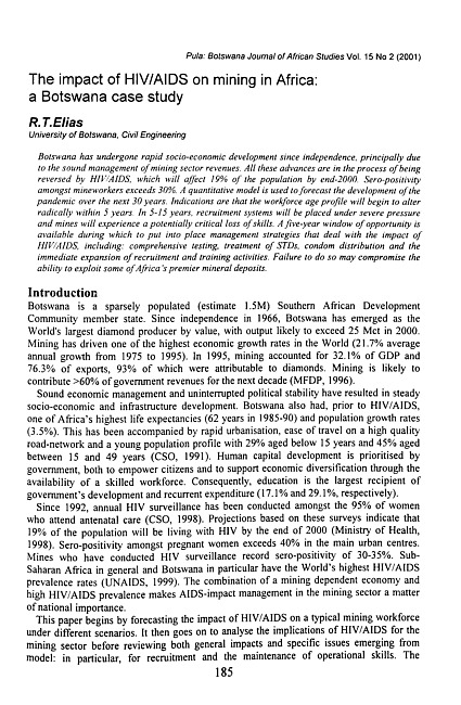 The impact of HIV/AIDS on mining in Africa : a Botswana case study
