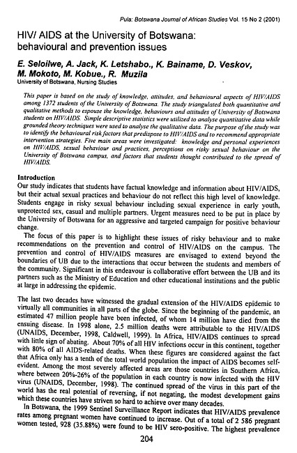 HIV/ AIDS at the University of Botswana : behavioural and prevention issues