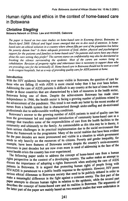 Human rights and ethics in the context of home-based care in Botswana