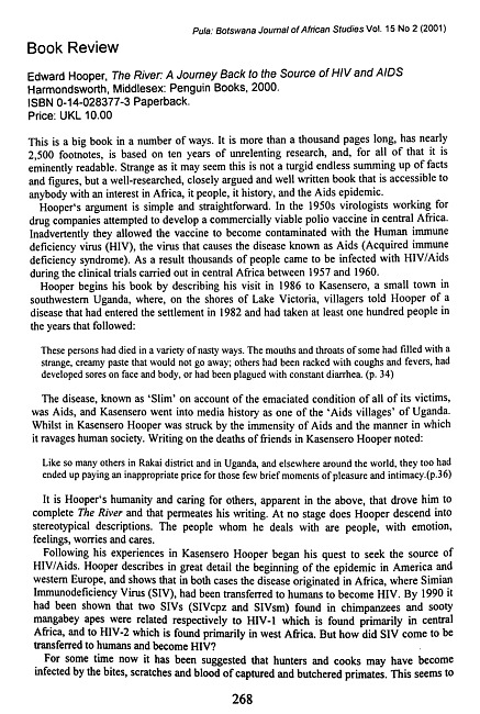 Review of: Edward Hooper. The river. London: Penguin, 2000