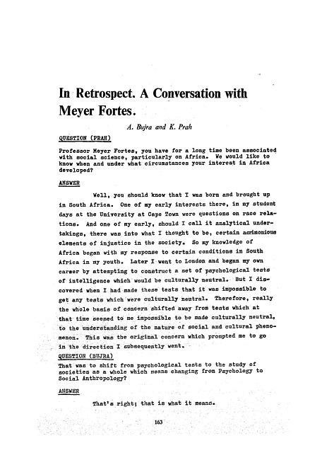 In retrospect : a conversation with Meyer Fortes