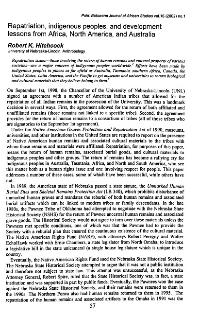 Repatriation, indigenous peoples, and development lessons from Africa, North America, and Australia