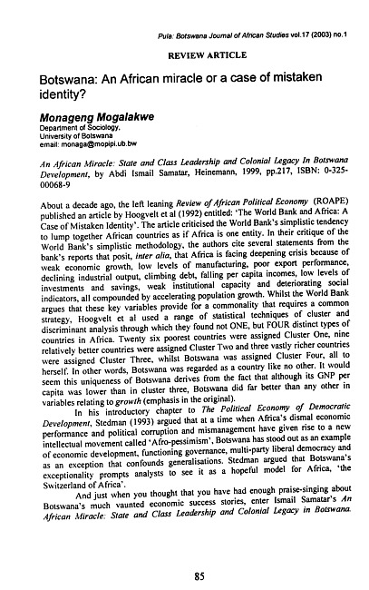 Botswana : an African miracle or a case of mistaken identity?