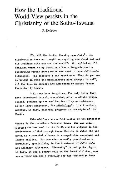 How the traditional world-view persists in the Christianity of the Sotho-Tswana