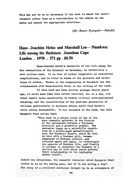Review of: Hans-Joachim Heinz & Marshall Lee. Namkwa. London: Cape, 1978