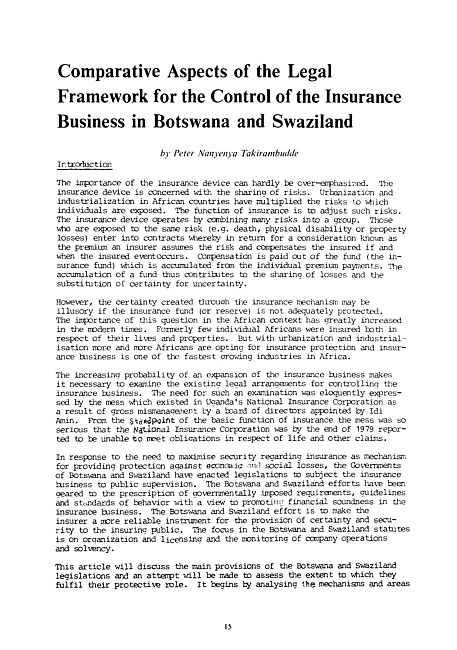 Comparative aspects of the legal framework for the control of the insurance business in Botswana and Swaziland