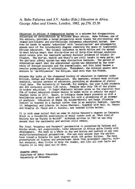 Review of: A. Babs Fafunwa & J.U. Aisiku (eds). Education in Africa. London: George Allen and Unwin, 1982