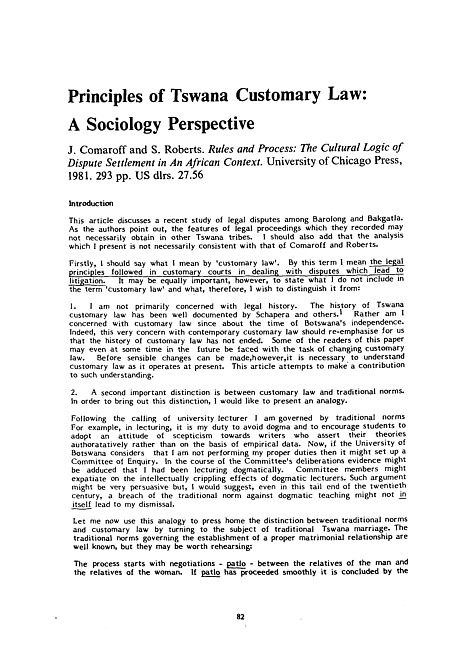 Review of: John L. Comaroff & Simon Roberts. Rules and process. Chicago: University of Chicago Press, 1981