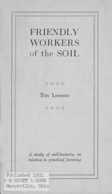 Includes: Foreword; An Invisible World; Fighting the Destroyers; Bacterial Armor; Friendly Helpers on the Farm; The Food of Plants; Conditions of Bacterial Life; The Soil Factory; The Waste of Nitrogen; Putting Plant Food into the Soil; and The Indispensable Condition.