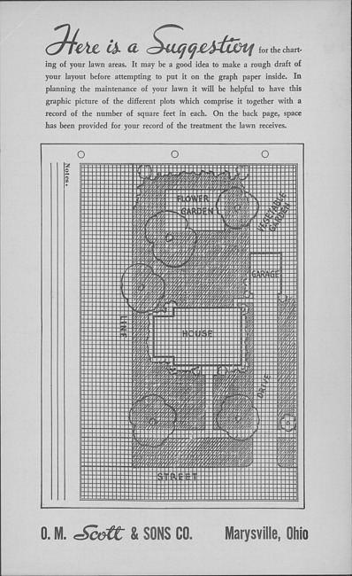 Includes: [Instructions for charting your lawn area], [a sample drawing], a blank piece of graph paper, and My Lawn Maintenance Record [blank table].