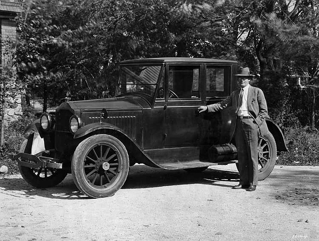 Still Image (192x)Part of Making of Modern Michigan1921-1922 Packard coupe, three-quarter left front view, male owner standing at side