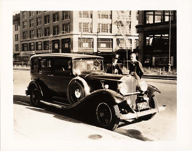 Still Image (1933)Part of Making of Modern Michigan1932 Packard sedan on city street in front of Packard dealer