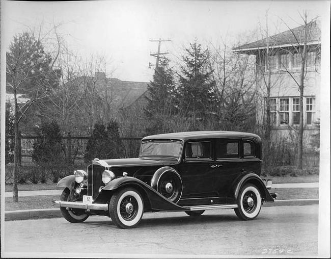 Still Image (1933)Part of Making of Modern Michigan1933 Packard sedan, left side view, parked on street in front of house