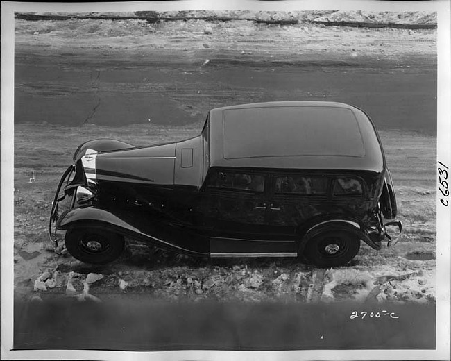 Still Image (1933)Part of Making of Modern Michigan1933 Packard sedan, left side top view, parked on street