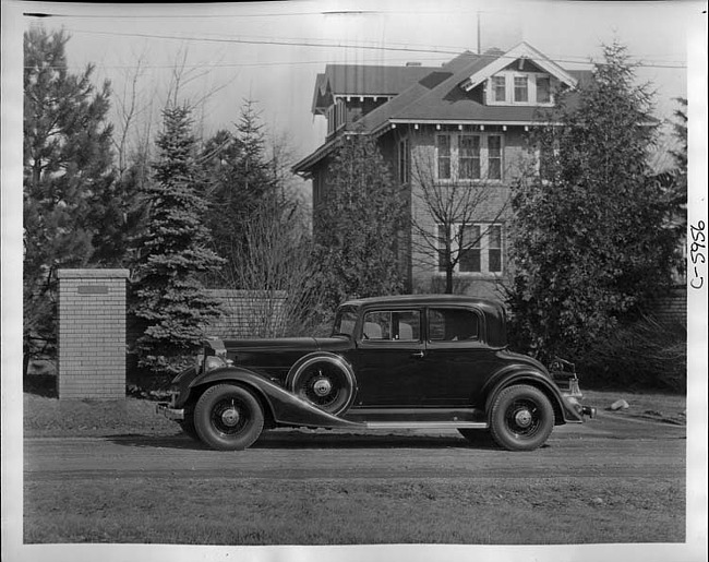 Still Image (1932)Part of Making of Modern Michigan1933 Packard coupe, left side view, parked on street, brick house in background