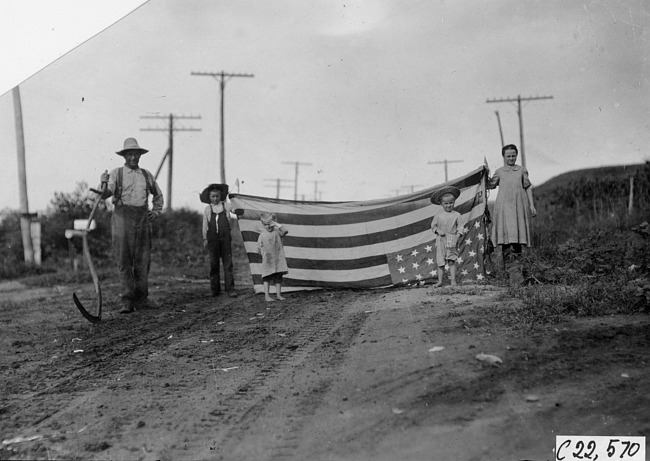Still Image (1909)Part of Making of Modern MichiganKelley twins and their flag at Chapman, Neb., at the 1909 Glidden Tour