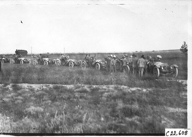 Still Image (1909)Part of Making of Modern MichiganLine up of Glidden tourist vehicles on rural road in Kansas, at 1909 Glidden Tour