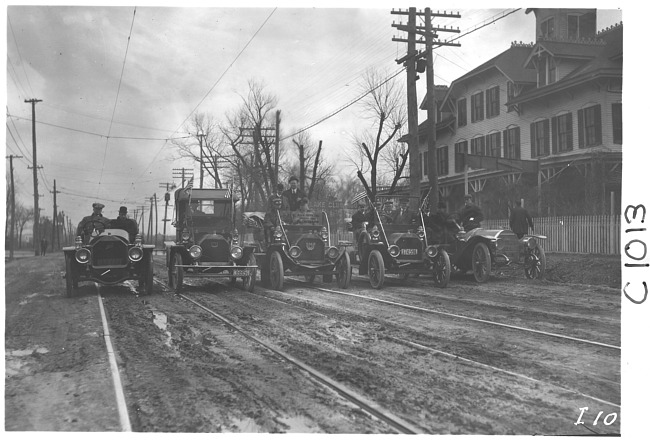 Still Image (1909)Part of Making of Modern MichiganE.M.F. car parked in line with other cars, on pathfinder tour for 1909 Glidden Tour